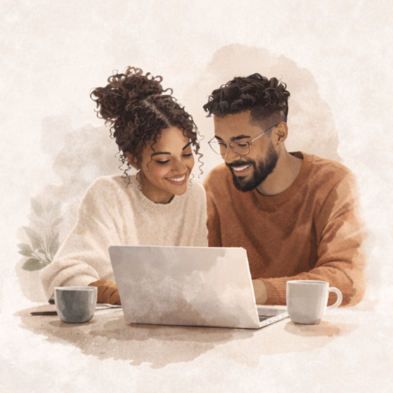 Die Beratung findet online statt. Das ermöglicht euch, Gespräche flexibel und ortsunabhängig wahrzunehmen – auch dann, wenn ihr beruflich stark eingebunden seid oder an unterschiedlichen Orten lebt.